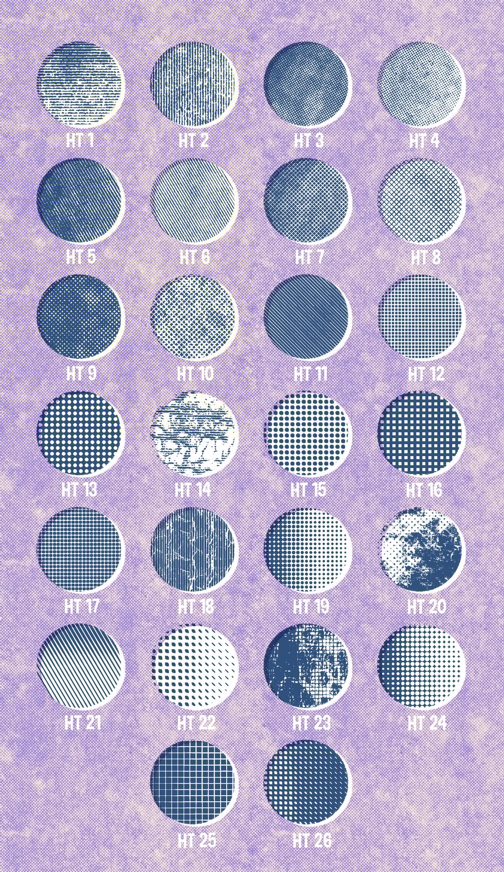 Set of 30 brushes: 4 liner brushes and 26 different halftone brushes (all examples above)