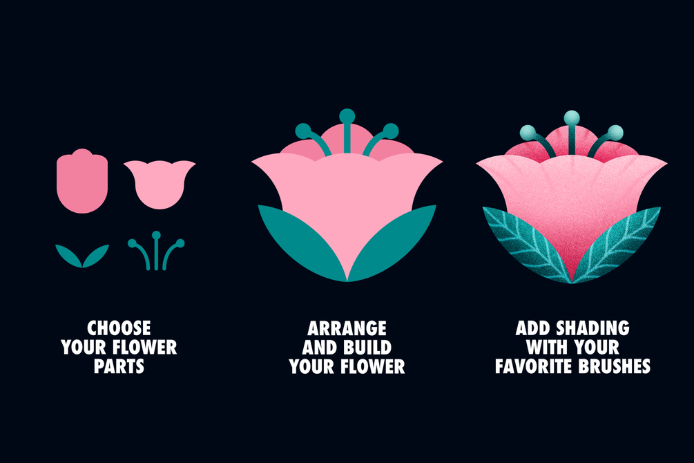 Speed up your workflow - use these flower shapes as a base and texturize with your favorite brushes.