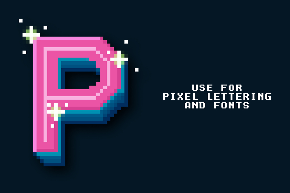 This brush kit allows you to create pixelated illustrations, to draw pixel by pixel or to make your own pixel art collection from scratch!
